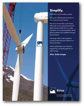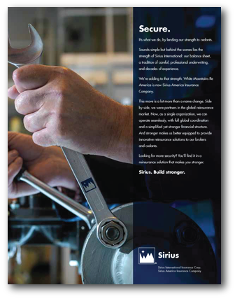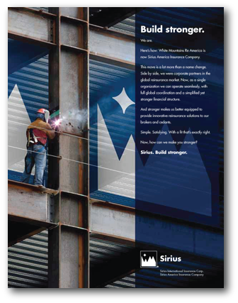 Designing for results is what we did with a series of ads for White Mountains Re America, one the world's leading reinsurance organizations, when the company changed its name to Sirius American Insurance Company. The theme of these ads, "Sirius. Build stronger." highlighted Sirius’ commitment to providing their clients with innovative reinsurance products.